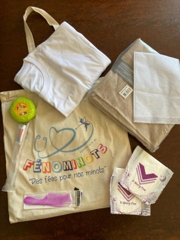 Le sac de soutien se destine aux parents pour pallier aux 48 premières heures d’hospitalisation. Ils ont pour but d’être distribués à tous les parents dont l’enfant est entré en urgence. Le but de ce projet est de fournir aux parents un peu réconfort dans un moment difficile. Lors d’une hospitalisation en urgence, il est agréable d’avoir de quoi se rafraichir et être plus confortable, vous ne trouvez pas?